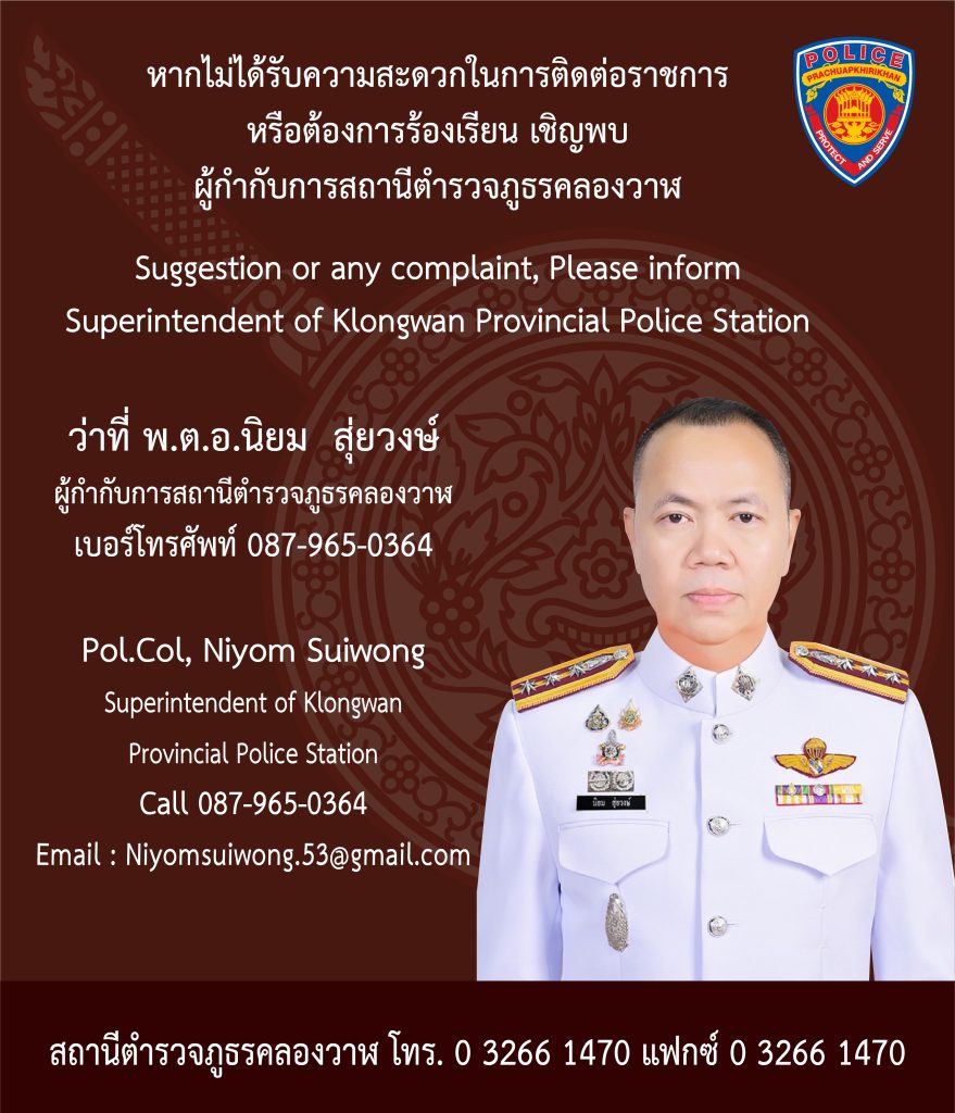 ช่องทางแจ้งเรื่องร้องเรียนการทุจริตของสถานีตำรวจภูธรคลองวาฬ